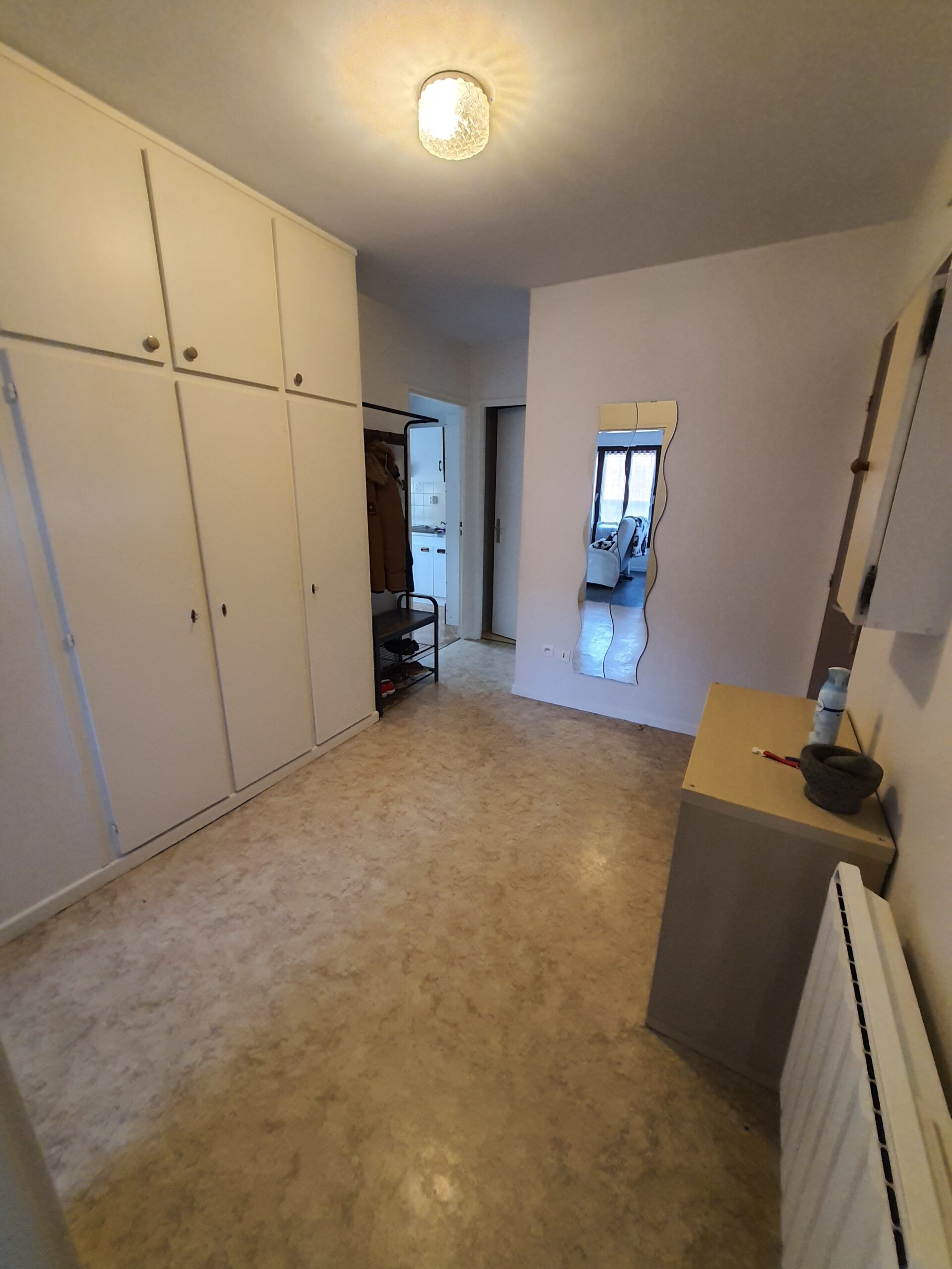 Situé au 3ème étage dans une copropriété des années 80, très bien entretenue et avec ascenseur, l’appartement est très lumineux notamment grâce à ses deux balcons avec vue sur les hauteurs de la ville qui offrent une lumière traversante sur la totalité de la pièce de vie.