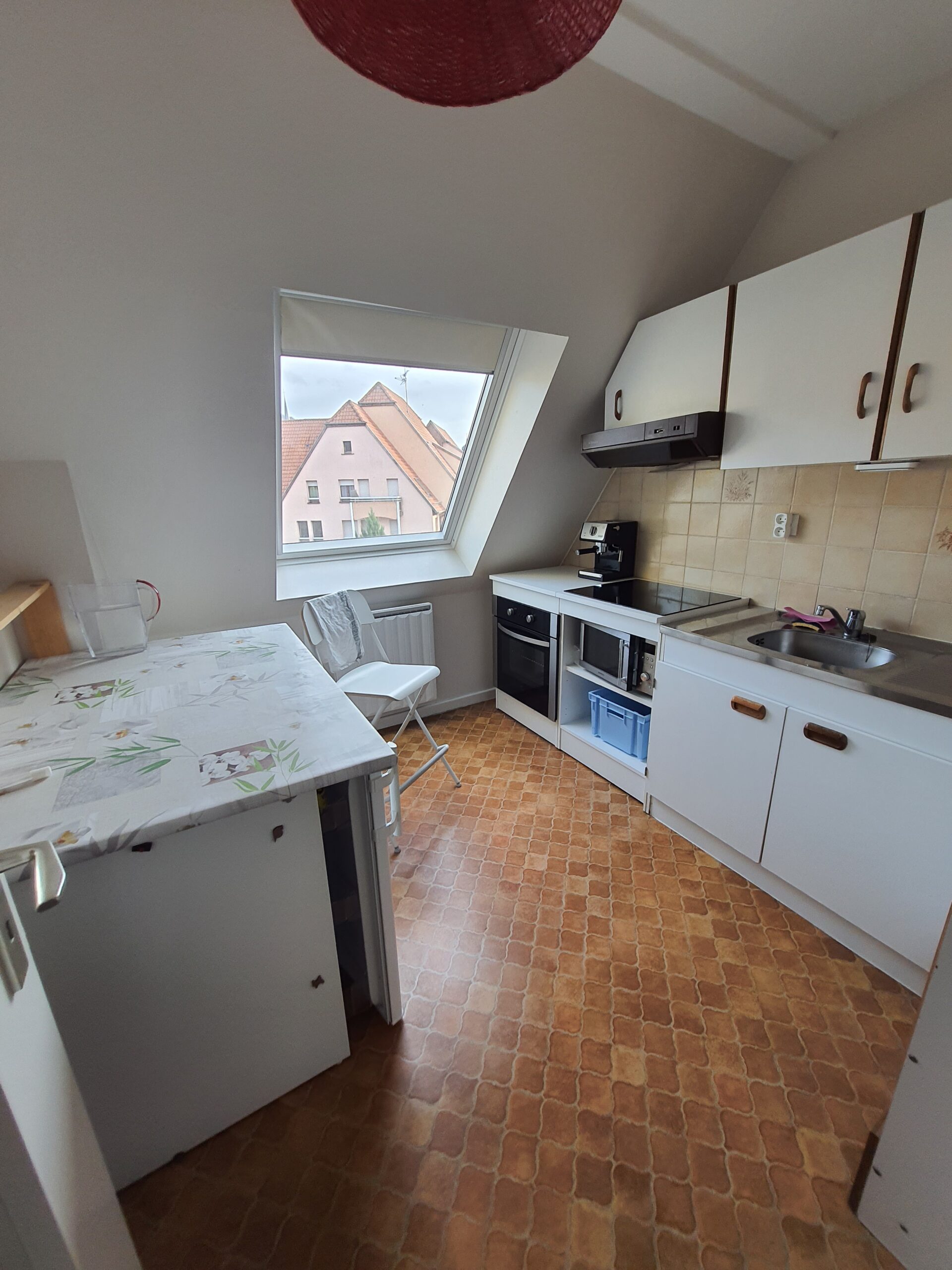 L’appartement est composé de : une grande entrée, une cuisine équipée, une belle pièce de vie de 17m² avec deux balcons qui constituent tous les deux une surface totale de 6m², une chambre, une salle de bains, un wc séparé, un grenier, un garage simple
