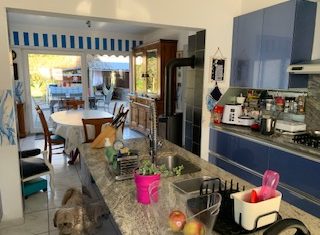 Cette maison comprend 1 grande cuisine équipée récente avec son coin repas donnant sur la terrasse, 1 séjour, 1 salon, 1 bureau au rez de chaussé.
